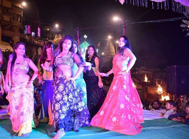 Among all other rituals, sex workers dance between funeral pyres during Chaitra Navratri Saptami is a unique tradition. It is certainly unusual, but only for those unfamiliar with the tradition. In reality, the glammed-up prostitutes are in far more pain than the people there to bury their loved ones. Locals claim that they dance all night in front of Mahashamshan Baba in order to avoid this fate in the next life. This is not a celebration but an act of penance before the Mahashamshan baba. This is an age old tradition where Nagar-Vadhu (prostitutes) dance around burning pyres on seventh night of Navratri which is also the concluding day of the three-day ‘Shringar-Mahotsava’ of Baba Mahashamshan Nath. Before the performance, the women offer prayers at the temple of Mahashamshan Nath at the ghat.